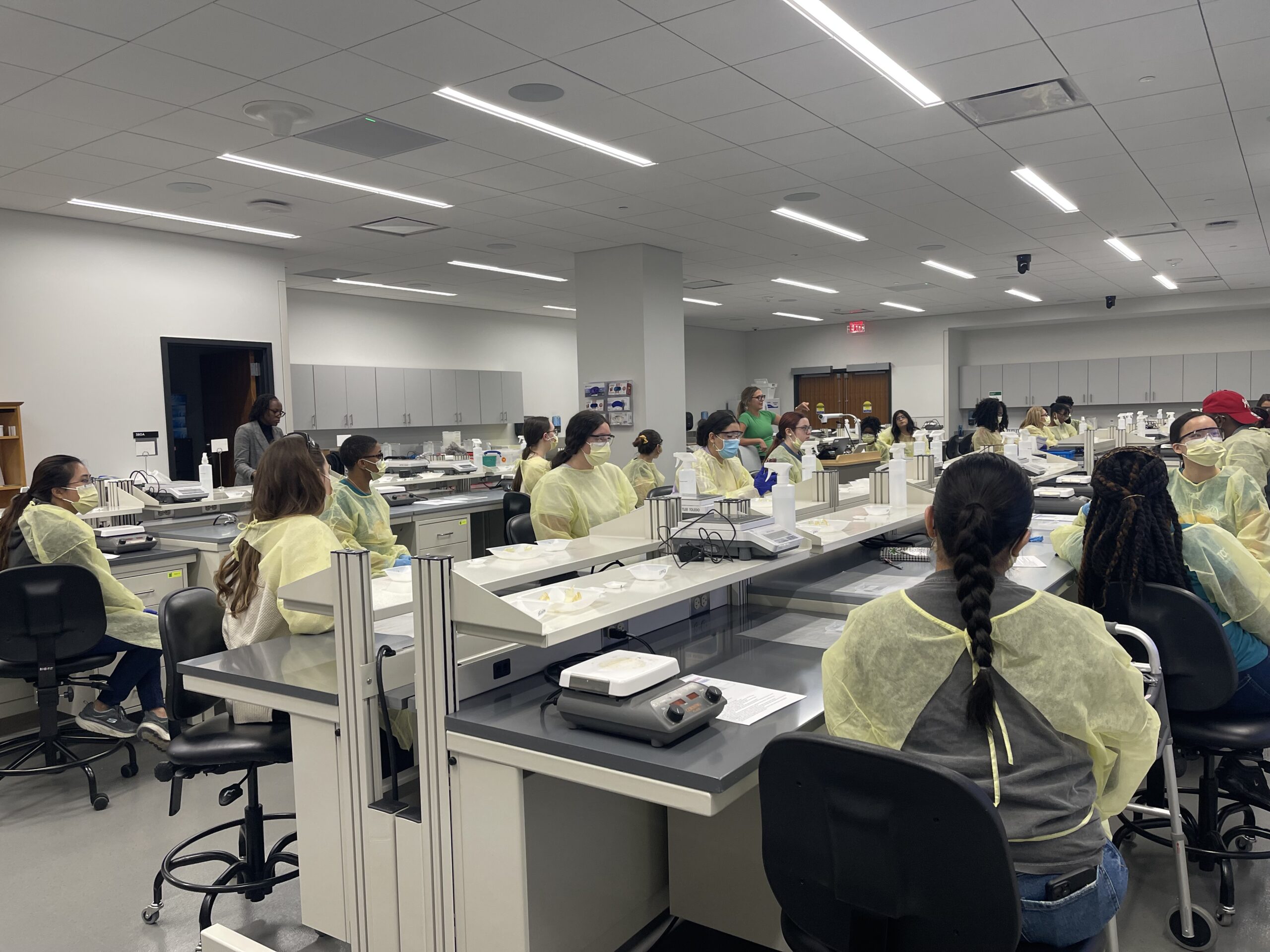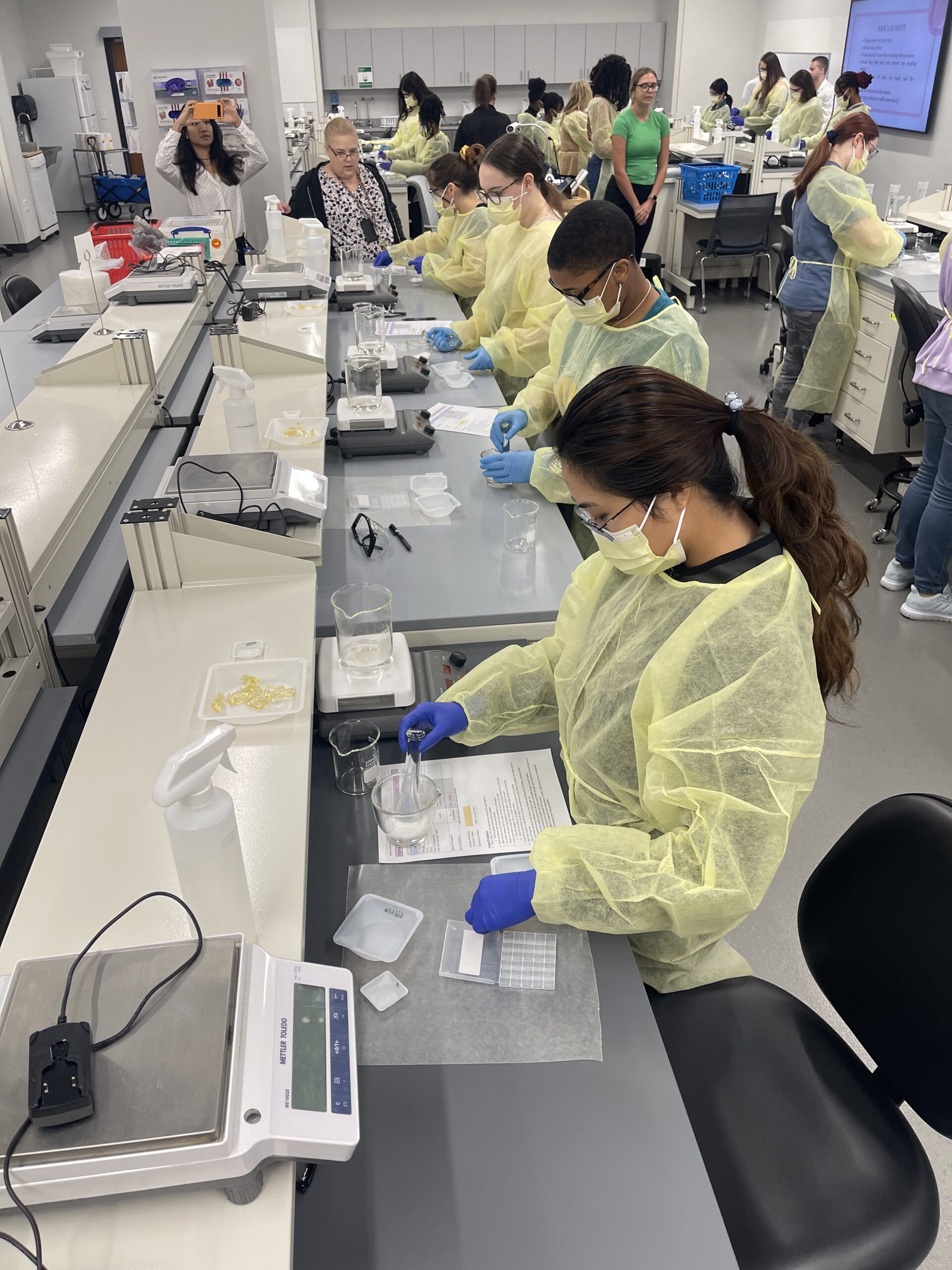 Students gained firsthand experience in a wide array of disciplines. They earned Stop the Bleed certification, practiced suture techniques, compounded medications in pharmacy labs and experienced a day in the life of a physical therapist inside a simulation center.